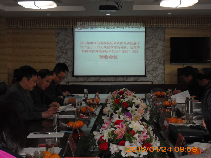 2015年1月24日,受江蘇省科技廳委托,淮安市科技局組織專家主持召開了由我公司承擔的省科技成果轉化專項資金項目 “基于工業無線技術的高可靠、超低功耗網絡化測控系統研發及產業化”(項目編號:BA2010114)驗收會。驗收委員會專家聽取了項目承擔單位所作的技術研發、產業化建設和財務決算報告,審查了項目的有關文件、審計報告及財務相關資料,考察了項目實施現場,經質詢和討論,專家組一致同意項目通過驗收。
